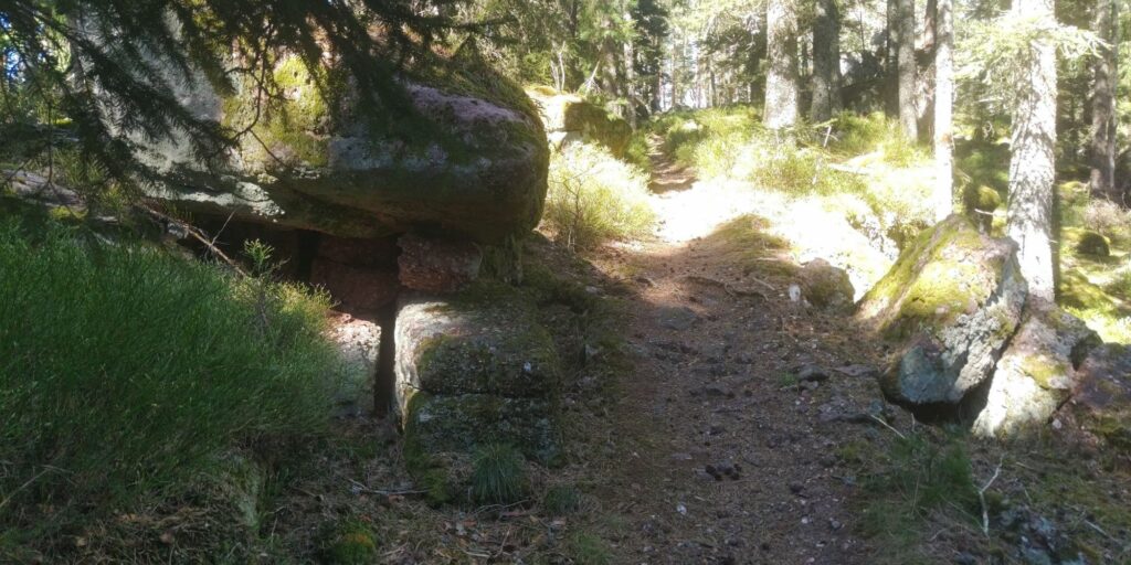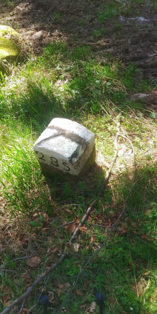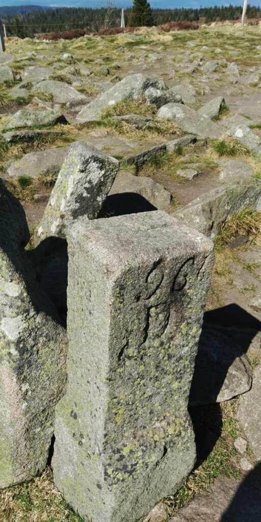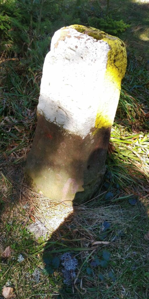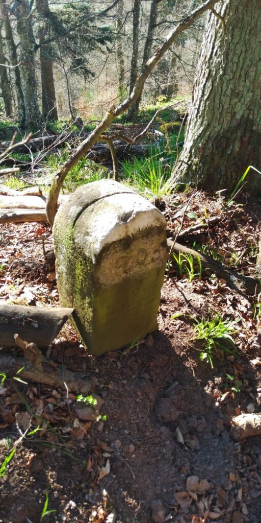 Grenzsteine, auch mit Rille zur Andeutung der Grenzrichtung gibt es zuhauf