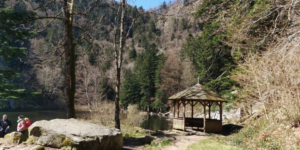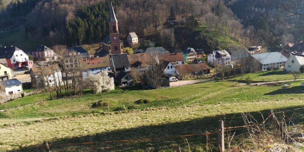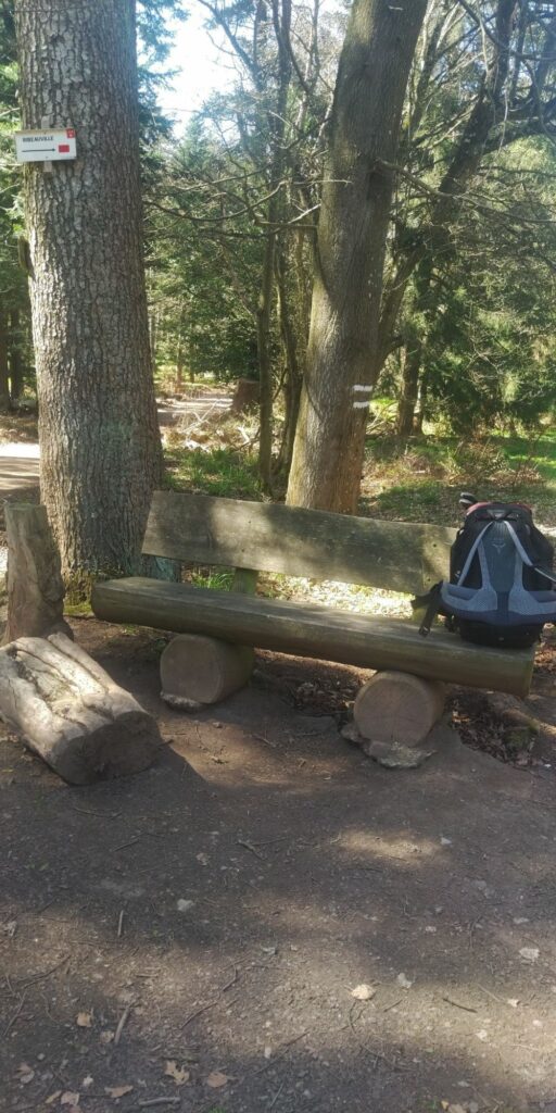 Nach ca. 1 Stunde komme ich an einen schönen Rastplatz am Ortseingang von Thannenkirch mit sonnigen Bänken. Dort mache ich sogar ein kleines Nickerchen.