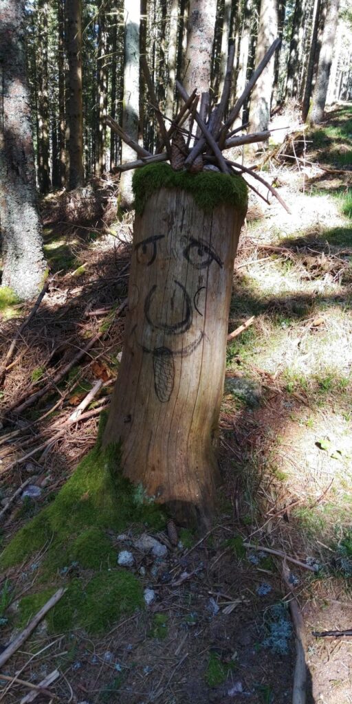 Das Frühstück ist für eine Jugendherberge ganz ok. Zum Frühstück sind zusätzlich zu den Familien auch eine Reihe von Paaren da. Um den (Klein-)Bus um 10:15 ab Altleiningen-Feuerwehr zu erreichen muss ich mich nicht besonders anstrengen. Auf dem Weg dahin komme ich wieder bei dem liebevoll gestalteten Rastplatz am sog. Röhrenbrunnen vorbei.