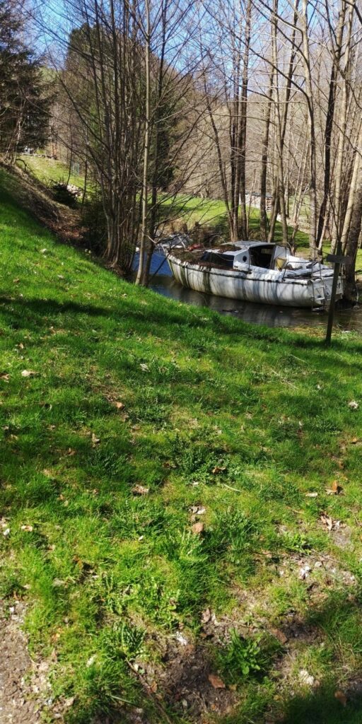 Ganz unten in Faurupt finde ich ein skurriles Boot in einem kleinen Teich, ein weiteres Boot steht auf einem Parkplatz, naja.
