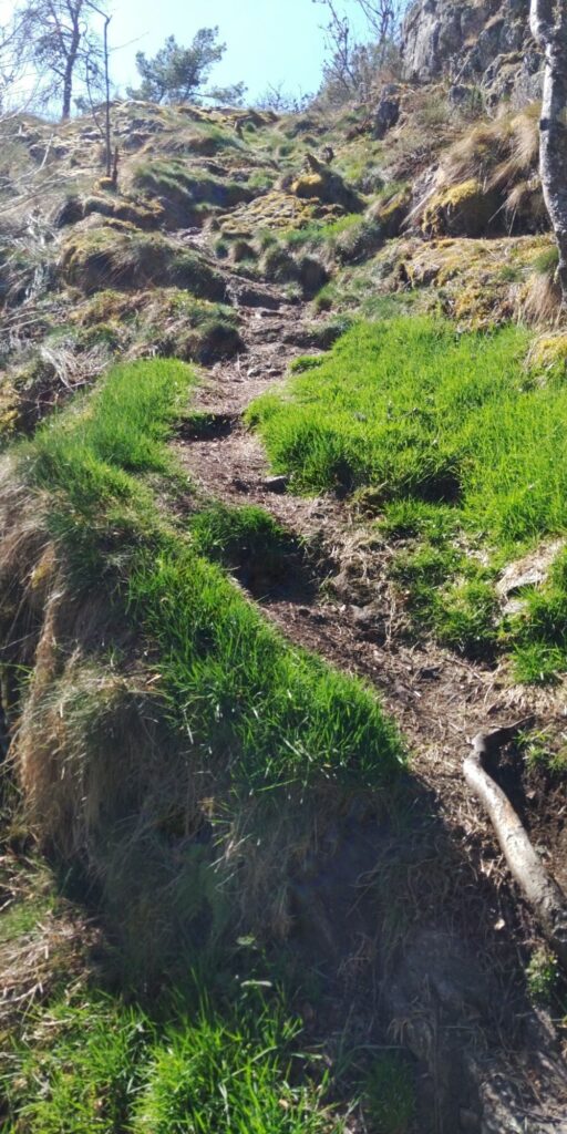 Dann kommt noch mal ein heftiger Anstieg und es wird richtig spannend über ein Felsenriff, zeitweise bin ich unsicher, ob ich nicht umkehren soll, aber der Weg führt dann doch nicht direkt am Abgrund vorbei.