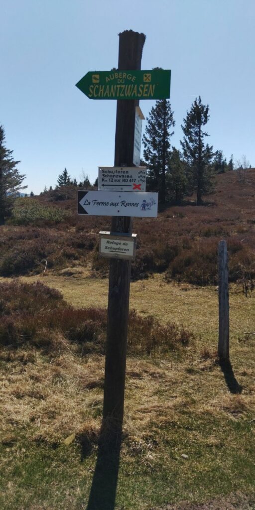 Hier wäre es rechts nach Aubure gegangen, ich folge dem felsigeren Pfad links