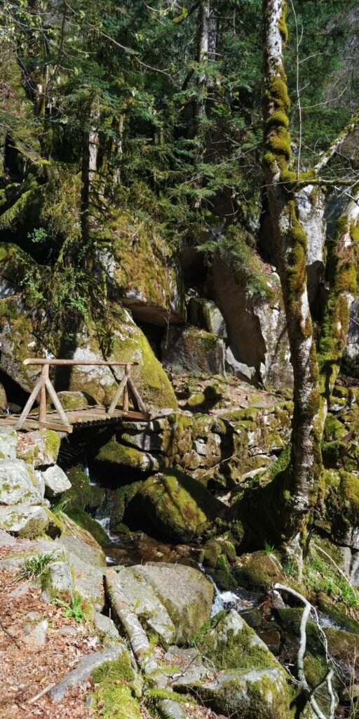 Auch danach wurde es nicht langweilig. Felsen und Brücken begleiteten Wasserfälle und den Weg.