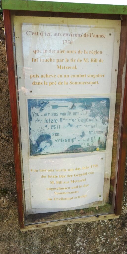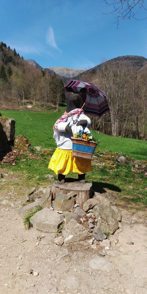 Das Denkmal für den letzten vor 275 Jahren geschossenen Bären war auch österlich geschmückt. Eine Bank lud zur Rast ein.