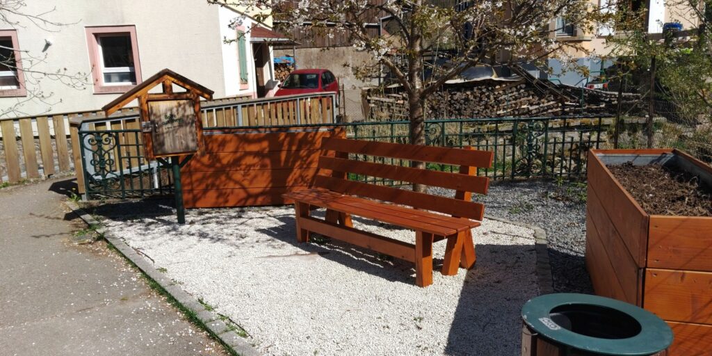 Im Ort Metzeral fand ich eine im Internet gelobte Patisserie, wo ich ein leckeres Passionsfruchttörtchen und einen Kaffee erstand und auf der Bank davor verzehrte. Im Ort gab es mehrere Brunnen und eine nette Leseecke.