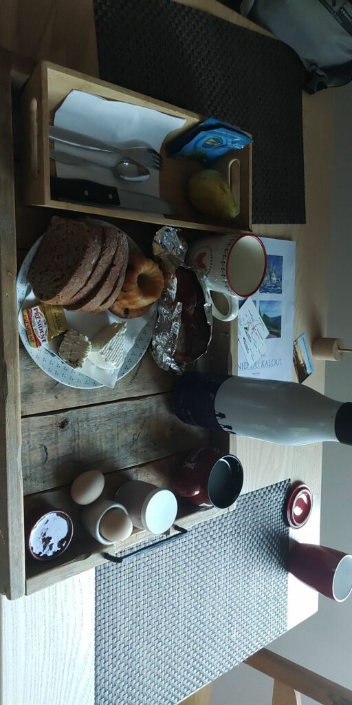 Die Wirtin freut sich, dass ich auf Empfehlung meiner Frau da bin und gibt mir noch 2 Äpfel und 2 Madeleines mit auf den Weg. Falls ich unterwegs Hilfe brauche, soll ich mich gerne melden.