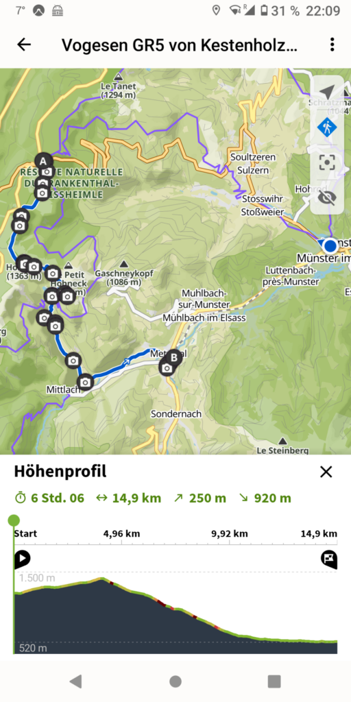 Diesmal geht es 5 Etappen lang durch die Vogesen. Den Abschnitt Châtenois – Metzeral hat Rike schon längst bewältigt, ich hole ihn nun nach.